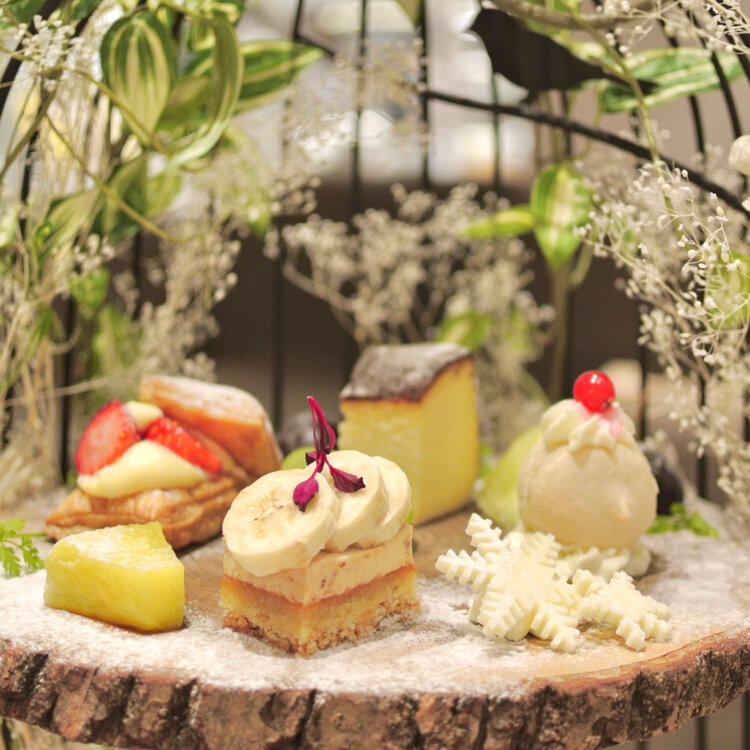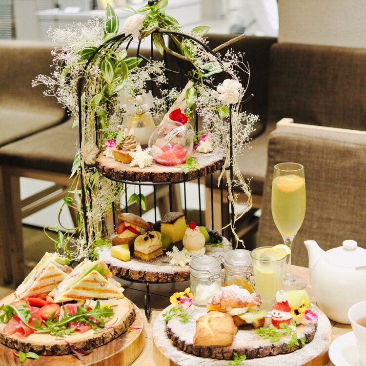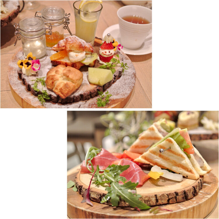 森の切り株プレートにはセイボリーやスイーツが山盛り😆