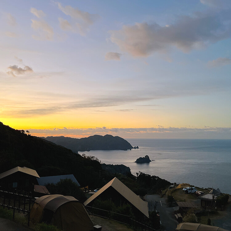 夕日ヶ丘キャンプ場。その名の通り、海に沈む夕日が見えるキャンプ場です🌅