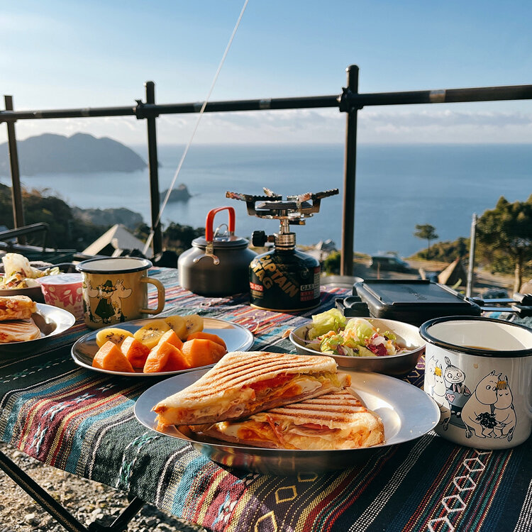 テントサイトは山の斜面に段々畑のように作られていて、視界を遮ることなく景色を眺めることが出来て最高✨✨