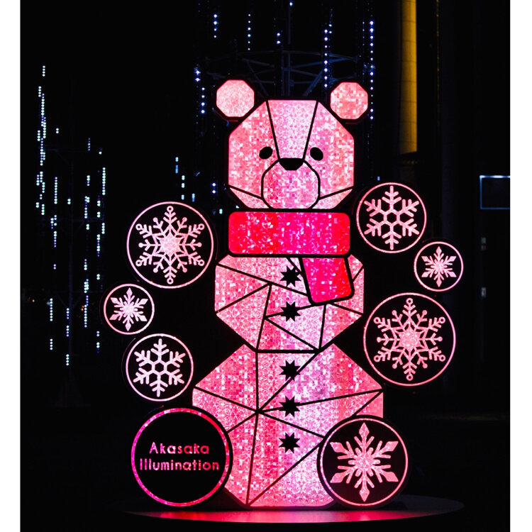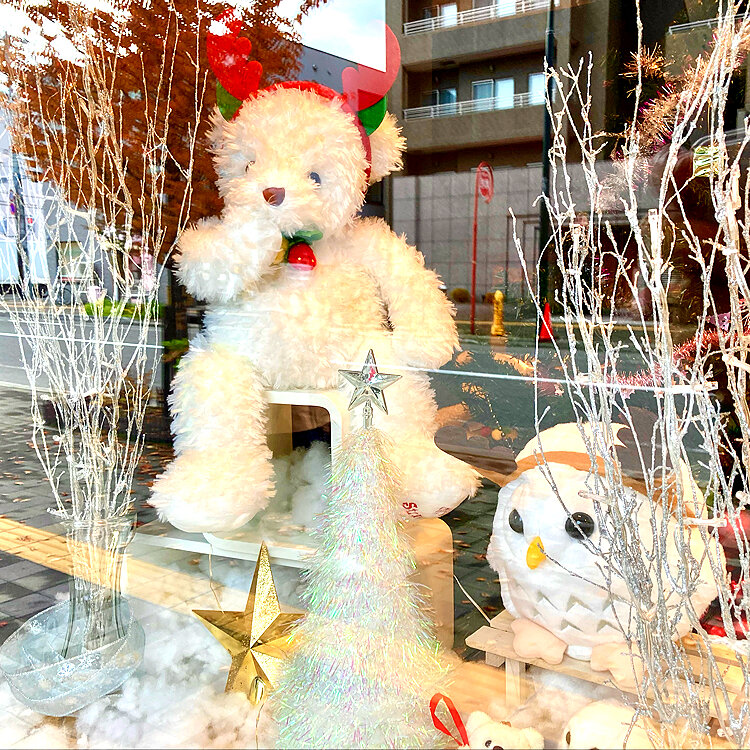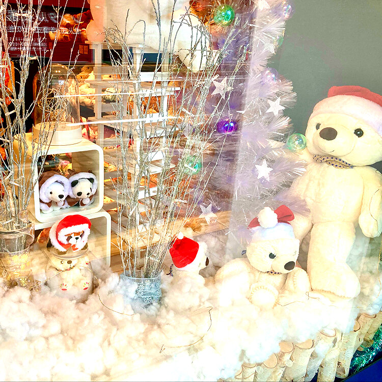 真っ白な雪の中にたくさんのぬいぐるみ達が可愛く