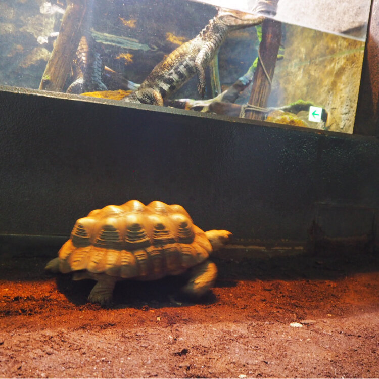カメさん🐢がワニさん🐊を横目に見ながら自由に歩くスタイル。 #動物園 #iZoo
