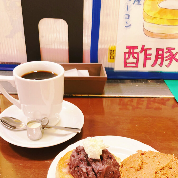 冬旅❄️西へ🌿 旅、二日目😊名古屋の朝は… やっぱりモーニング〜☀️ 前々から行きたかったブチョーコーヒーへ☕️ この日は前日からガクッと気温も下がり⤵️ 寒空の中🥶名前を書いて待つ事15分ほどで 入店出来ました❣️(お店前はちょっと窪んで いるので風は当たりませんが、、😅) お店外も店内もファンキー❓で賑やか(笑) なんだか楽しい喫茶店です❤️💛💙💚 注文したのは食べてみたかったモーニング🥰 小倉あんときなこバターをカイザーパンで💛 この、きなこバターが期待通り絶品でした〜😆 めっちゃ美味しい〜✨✨本当に美味しい😋 パンも美味しい〜🥯コーヒーも美味しい〜✨✨ 待っても食べたい味♡並んで良かった🥹 ちなみにきなこバター、お持ち帰りできます🧈 でもバターなので溶けます💧💧この日、この後 まだ名古屋歩きがあるので泣く泣く諦めて、、、 まだまだ名古屋楽しみます🏯→行きません 笑 #ことりっぷと一緒 #ことりっぷ名古屋 #ブチョーコーヒー #モーニング #名古屋モーニング #カイザーパン #小倉あん#きなこバター #コーヒー