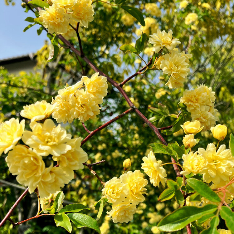 向かいにあるご自宅には黄色いモッコウバラが