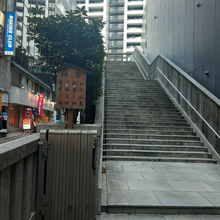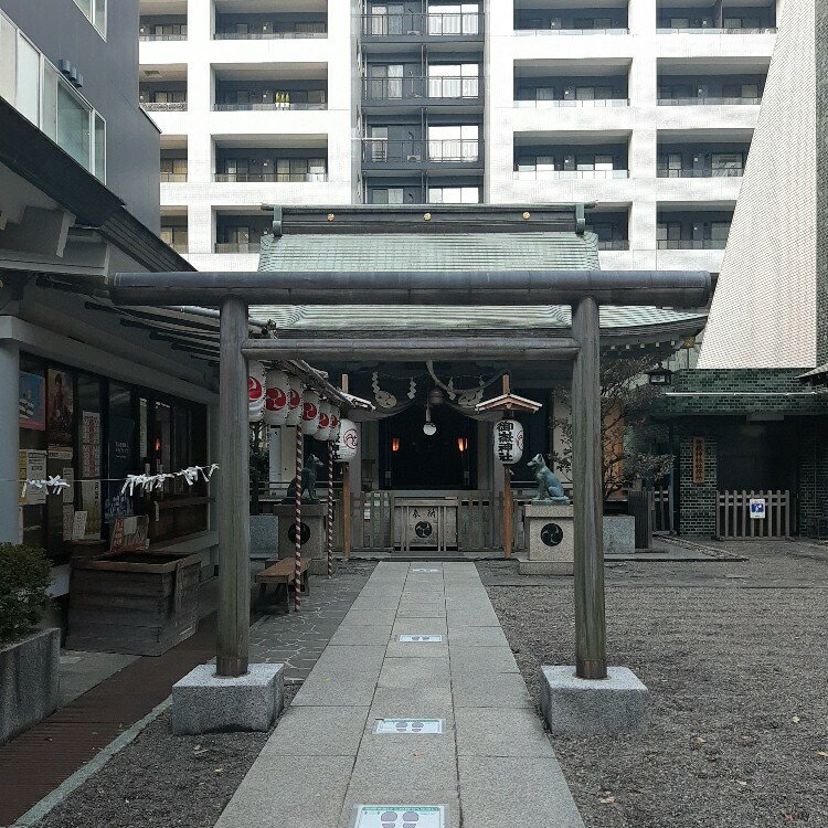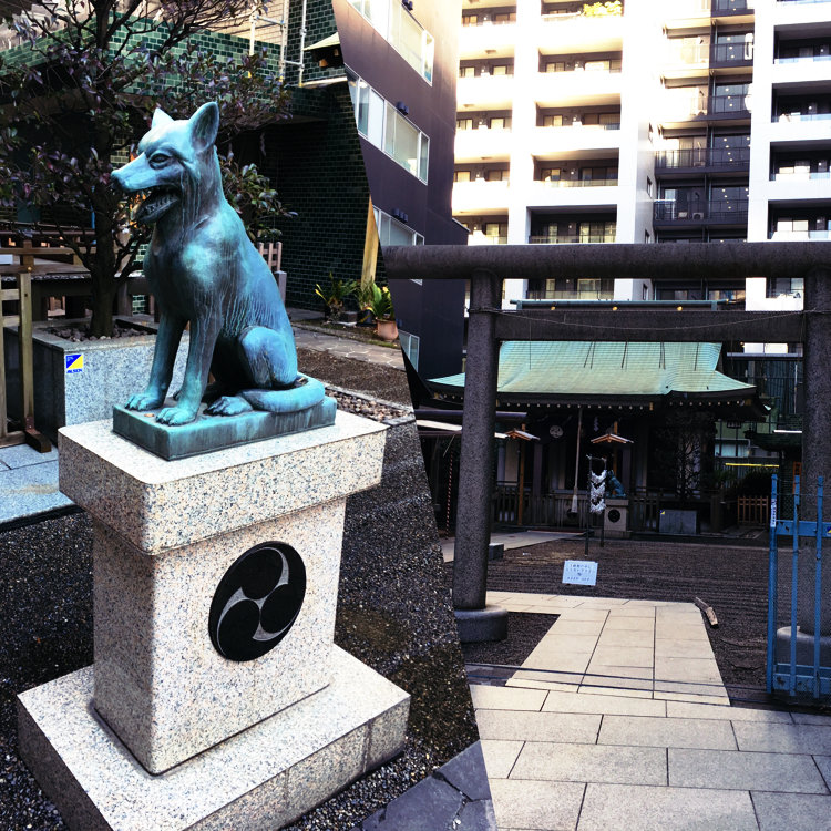 宮益御嶽神社 渋谷の街中のビルの間にあります。 狛犬が珍しい 日本狼 です。