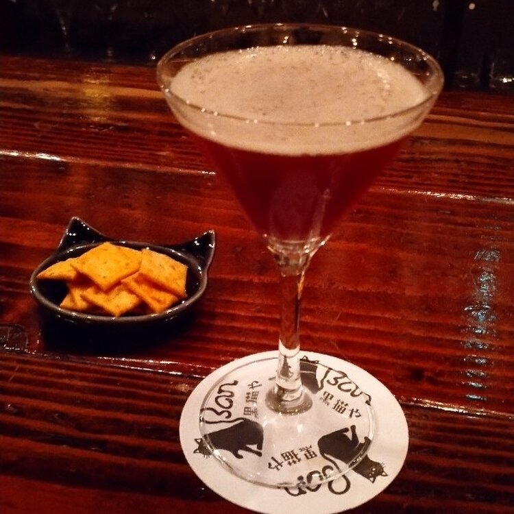 前から気になっていたbarに来ました😃 お店の名前が黒猫という事もあり、色々な所で黒猫がいます❤️猫好きにはたまらないですね😆 今回頼んだのは『Very Berry Berry』です。 3種類のベリーをミックスしたカクテルですが、甘すぎず飲みやすかったです。 名前と見た目と違って、アルコールはけっこう感じました🍸️