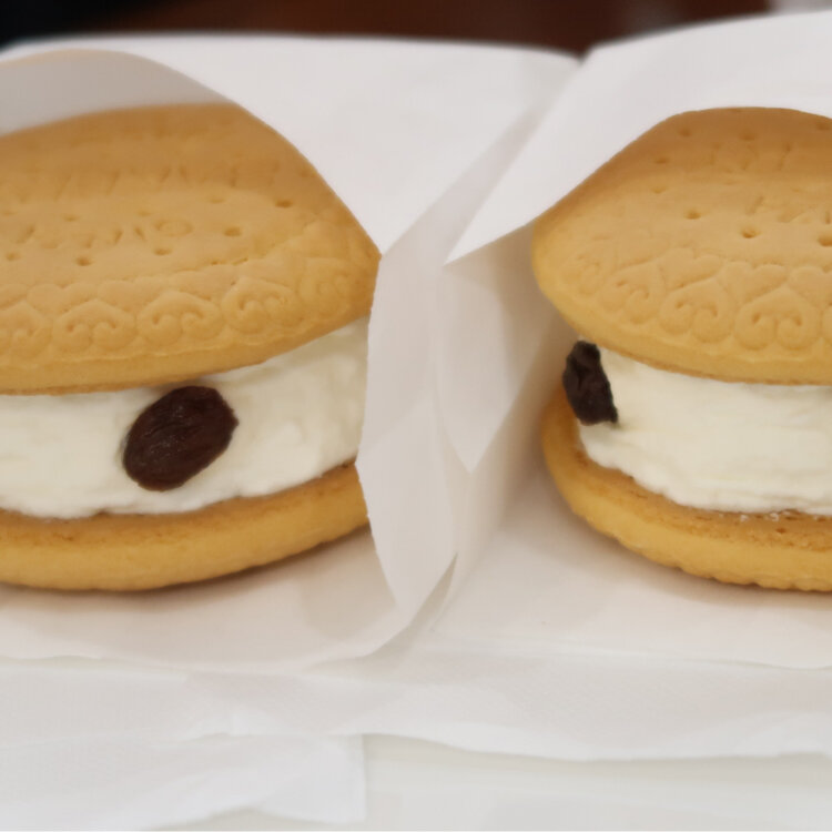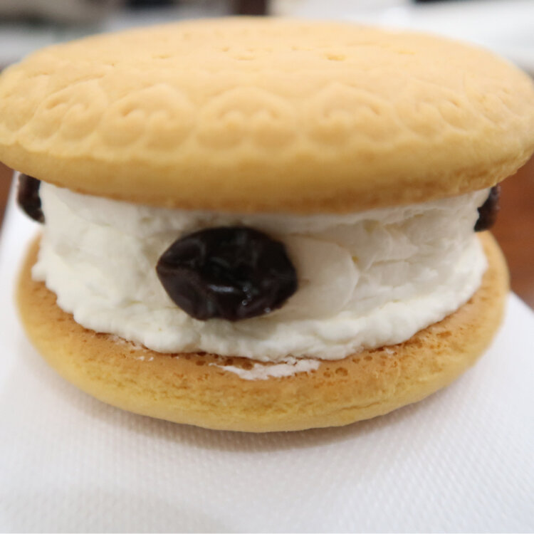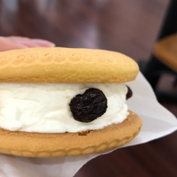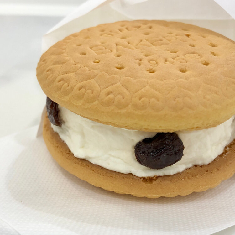 そこに生クリームとレーズンをサンド(๑˃̵ᴗ˂̵)
