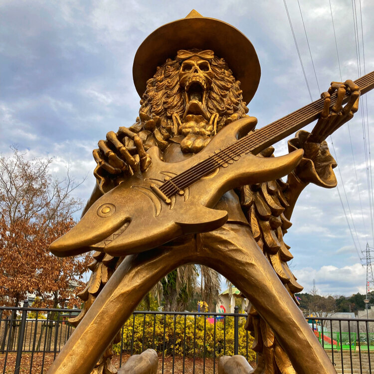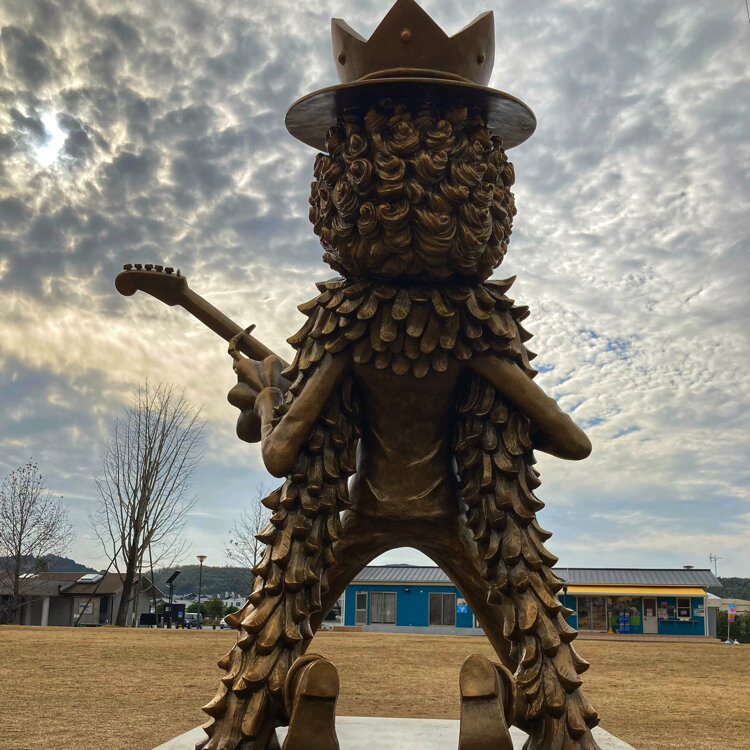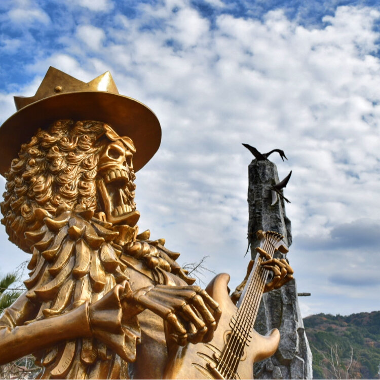 熊本県と熊本県出身の漫画家・尾田栄一郎さんが描く人気漫画『ONE PIECE』とが連携した復興プロジェクト〈麦わらの一味「ヒノ国」復興編〉の一環として、御船町ふれあい広場にブルック像が設置されました。