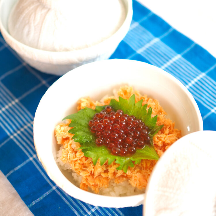 新潟加島屋さんのいくら漬けと鮭フレークで♡