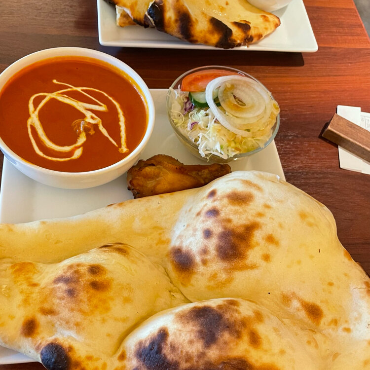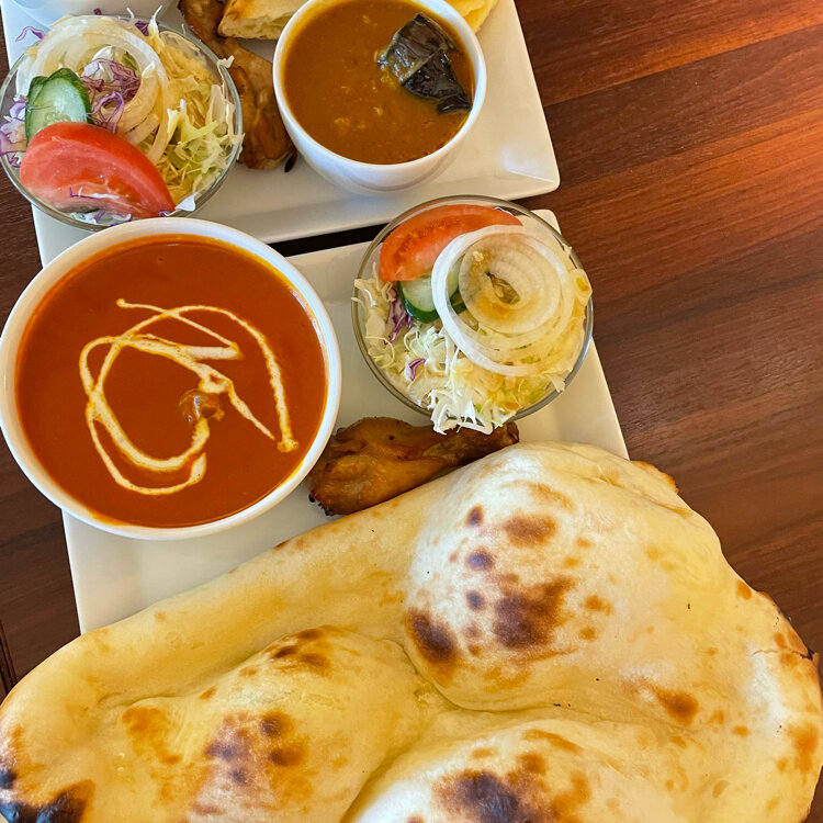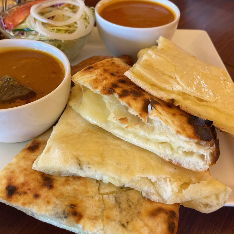 #お洒落なカレー屋さん#チキンカレー#なすとじゃがいものカレー#バターチキンカレー#チーズナン#プレーンナン#あったか時間