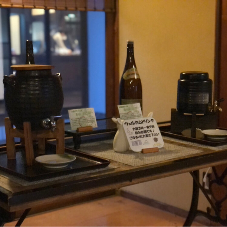皆生温泉 風雅 今回のお宿 レトロな雰囲気のロビーで 日本酒、ソフトドリンク、コーヒーが 頂けます。コーヒー以外は21:00まで 提供されます。コーヒーは常時。