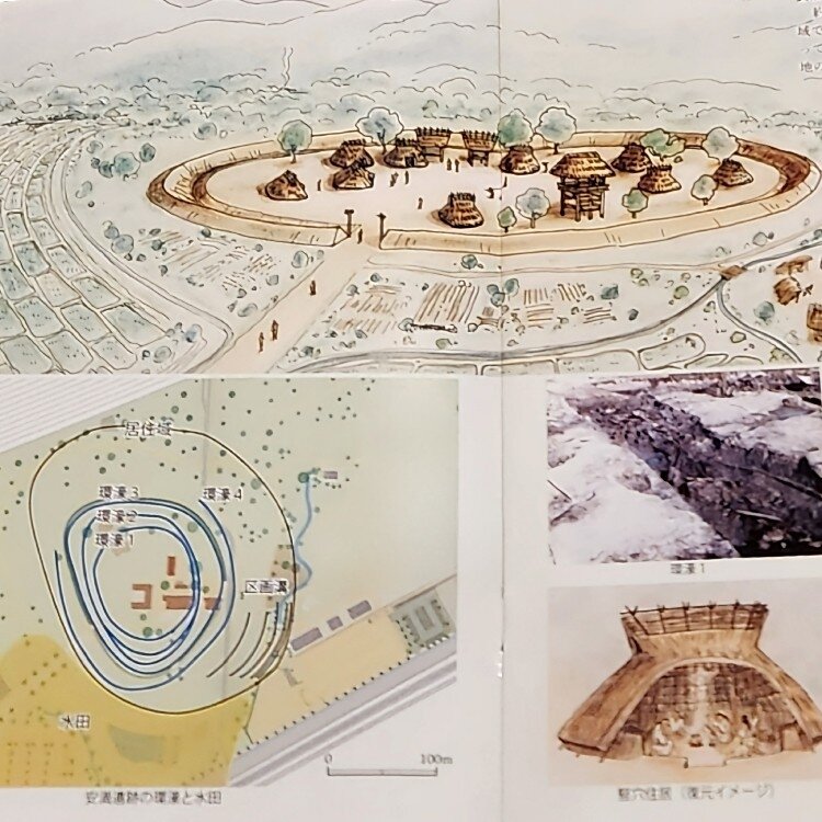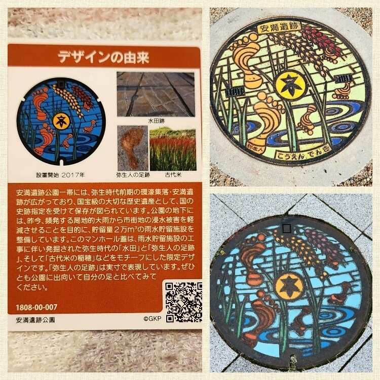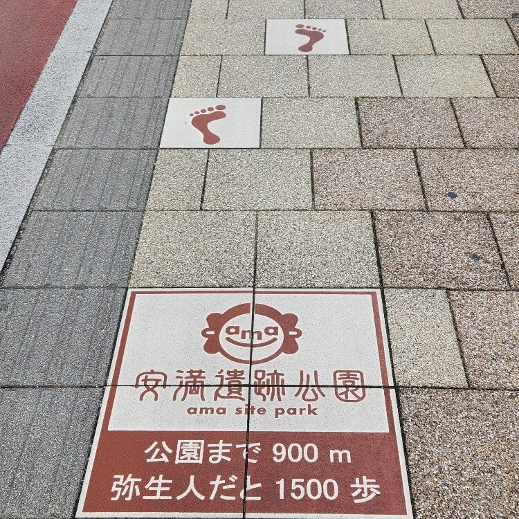 【2日目は高槻市】⑨ 3/7 今城塚古墳はお名残惜しいけど次へ❗ JR高槻駅に移動。ユーザーのhanaさんが投稿していた遺跡を目指しましょう💨💨💨 #カラーマンホール があって #マンホールカード がいただけるようです。 [安満遺跡公園](あまいせきこうえん) 今から約2500年前の弥生時代の集落跡 水田の跡。弥生人の足跡👣が出てきたらしい。 道案内のようなものが歩道に記されている。約100mくらい歩くと次の道案内が.... 弥生人だと何歩で歩ける.....それで私も数えてみたんです。 えっ👀⁉️ だいたい弥生人と同じような歩数❗ つまり弥生人と足の長さが同じくらいなの(・・? 私は短足ですよぉ~😅  チョコマカチョコマカ🚶‍♀️💨💨💨 歩きますよぉー😂 何だか嬉しいやら悲しいやら..... 歩数計の数字、稼げますね😁 2種類のカラーマンホール見つけた‼️ 足の形、確かに私と似ている。見つかった足跡と同じ寸法で描いているんですって。 あーー、足をのっけて比べてみればよかった....😅 マンホールカードは 『ポーネルンド Park Center 』のなかにある公園事務室で貰えます 公園内には2種類のカラーマンホールが設置してあります。 一日中歩きすぎてヘトヘトへ(×_×;)へ 奥の方にお墓の遺跡とかあったみたいだけど、もうダメだこりゃ(/--)/ 弥生人の足跡👣 どこかにあったのかな? 写真もあまり撮らず....つまりパンフレットから撮った写真だけど、こういう集落があったのよ。 また、駅まで歩くのかと思うとこれで終了。もう4時すぎているもん😅 せっかく来たのにね...高槻市にはキリシタン大名の高山右近の史跡もあるのだけど、もう時間切れです。 #安満遺跡 #高槻市 #弥生時代 #弥生人 #水田稲作 #今から2500年前って紀元前