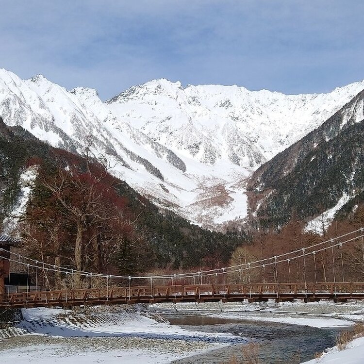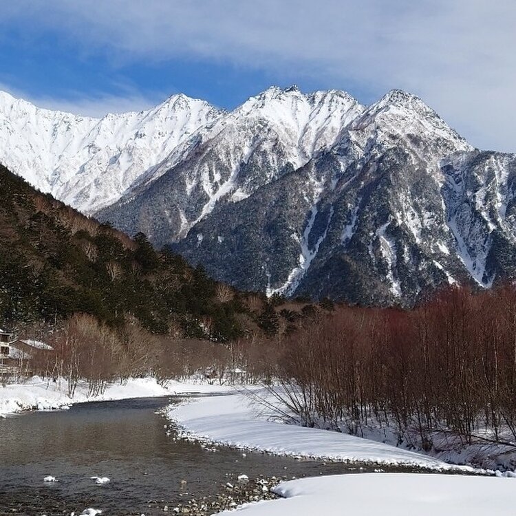 上流には穂高連峰、下流には焼岳が望める絶景🏔