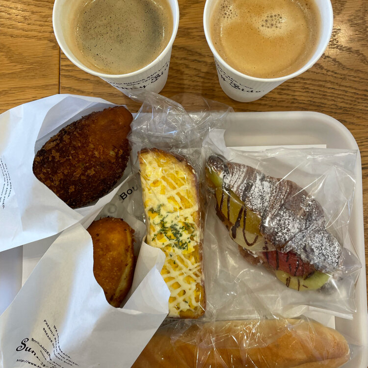 #パン好き便り#サニーサイド#モーニング#カレーパン#クロワッサンの彩りフルーツサンド#エッグトースト#ミルキー#テイクアウト#角食パン#パンダパン#ガツンとじゃがいもピザ#てりやかチキン#クロワッサン#ちーちくロール#あったか時間