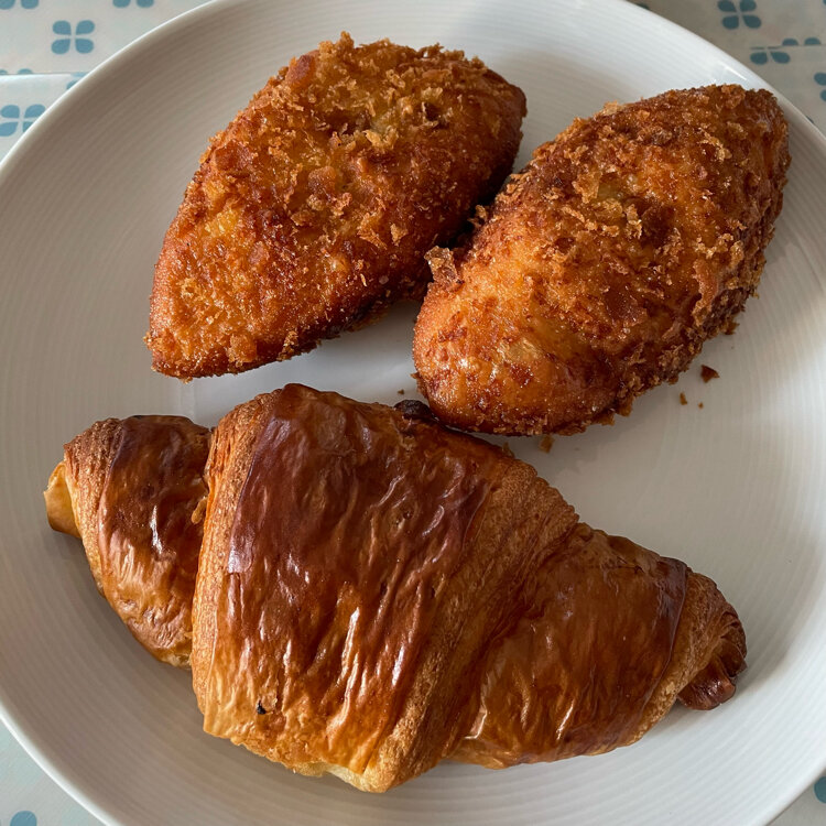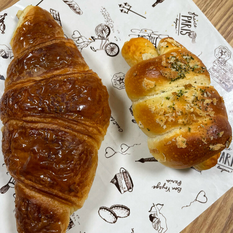 食パンと、てりやきチキン、ガツンとじゃがいもピザ、パンダパン、クロワッサン、ちーちくロールをテイクアウトしました。