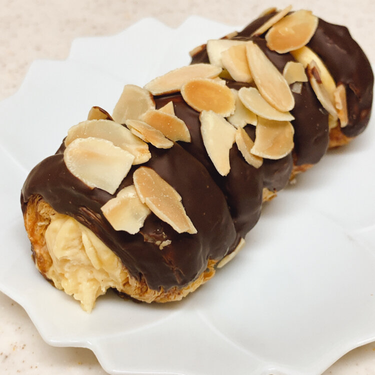 コロネのようなパイ生地の中に、カスタードクリームが詰まっています❣️