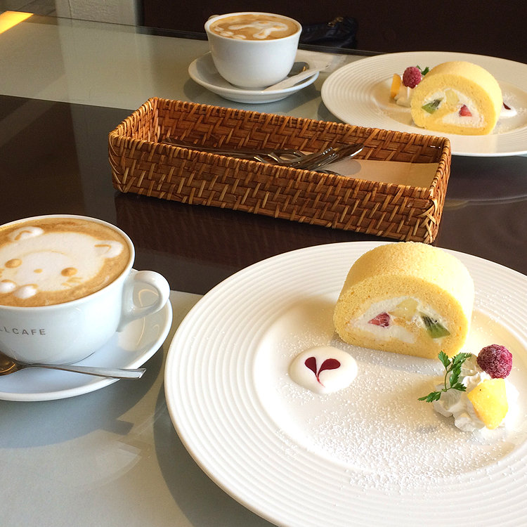 ランチ+デザート+飲み物。 フルーツロールとカフェラテ。 もぉ熊とうさぎが可愛すぎて。 久しぶりに行ったら‥はまりそう。 #ランチ