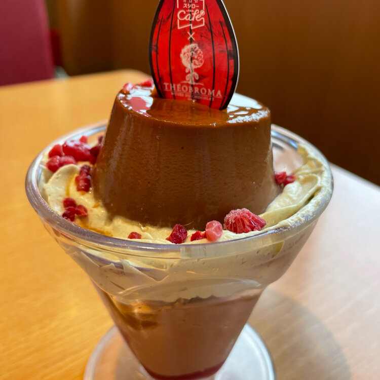 「テオブロマ」定番のショコラプリンから着想を得て、今回のパフェのために作り上げた新たなショコラプリンを頂きました。