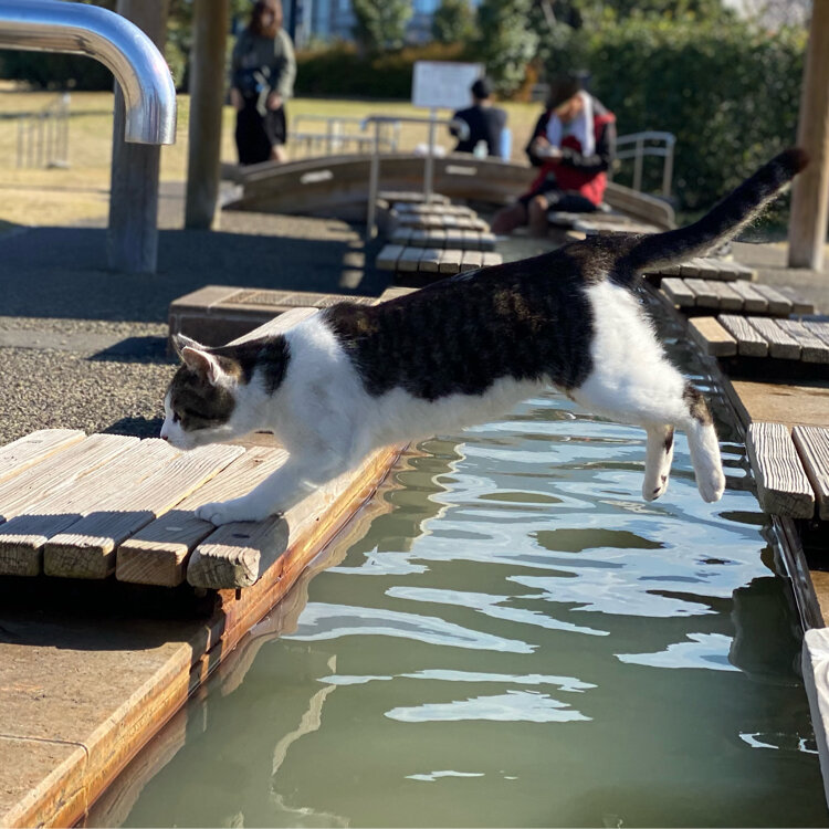 桜島にある日本一長い足湯にて遭遇。 #ねこさんぽ