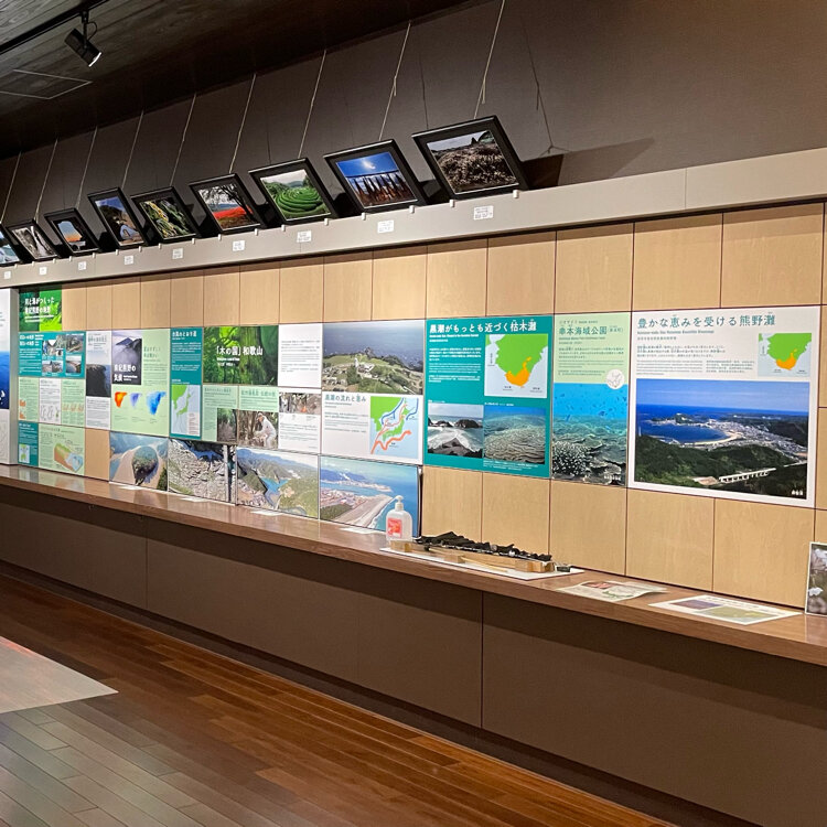 南紀熊野ジオパークの情報発信や調査研究の拠点となる施設です。センターでは、紀伊半島の大型立体模型に火山の噴火など迫力ある映像を投影するプロジェクションマッピング、大地のでき方を再現する体験装置、館内ガイドによる河川や津波の実験などで、南紀熊野の大地の成り立ちや自然の不思議を楽しみながら学ぶことができます。
