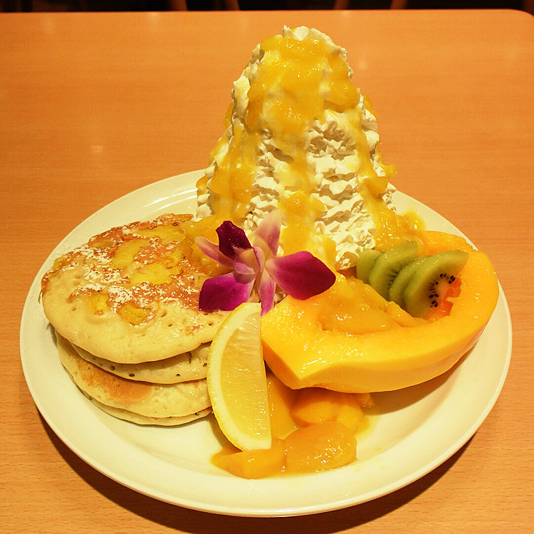 エッグスンシングスのマンゴーパパイヤパンケーキを食べました! ボリュームのあるパンケーキでこれだけでお腹いっぱいになりましたよ!(๑╹ω╹๑ )