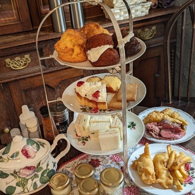 ドゥリムトンヴィレッジ内にあるポントオーク・ティールームレストランでピクニックアフタヌーンティー。