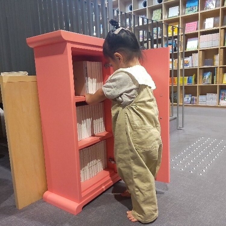 絵本や児童書、図鑑など子ども向けの本が子どもの興味が湧きやすいテーマ別に、子どもの手が届く範囲に出来るだけ表紙を前に向けて並べてある、まさに子どものための図書館です🍏✨