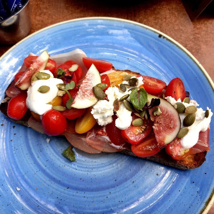 いつもテイクアウェイしかしたことなかったのだけど、どうしてもフィグやプロシュート🍅のったブルスケッタを食べたくて…パンが見えないくらいに具材がてんこ盛り〜ლ(´ڡ`ლ)