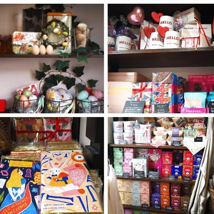 人気のトートバッグ、マグカップや、季節柄イースター柄のチョコレート、可愛いイラストの紅茶等、眺めるだけで、ワクワク。