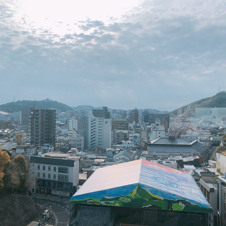ホテルのロビーやお部屋からは、市電やお城が見えて、松山に来たなぁと感じることができました。