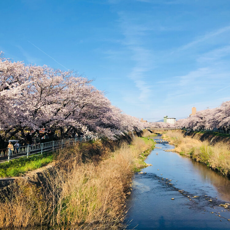 香流川の桜並木🌸 川沿いにずーっと晴れた日は おさんぽしてのんびり☕️✨ 川の所には、鯉のぼりもあって 夜は灯りがついてすごく綺麗です❣️ 情緒溢れる街並み🌸 また来年もみたいなぁ🌸 #愛知県 #香流川 #桜並木 #歩く