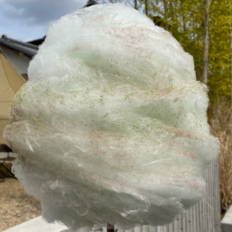 砂糖から独自の味を開発した和テイストな綿菓子で、京都産の抹茶や、丹波産のきな粉を使い、国産にこだわったオーガニックな素材で作る雅な綿菓子です。