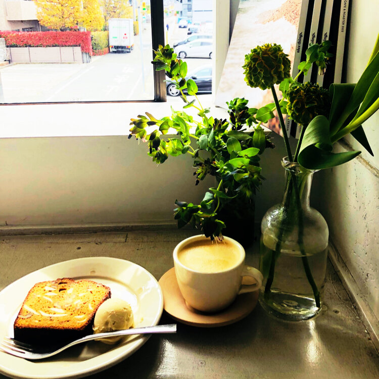 甲府で1番のカフェ。 AKITO COFFEE ナッツとクリームチーズの黒糖パウンドケーキと、オーツミルクラテ。