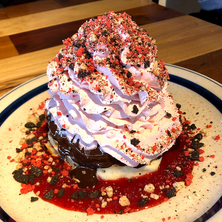 デザートにフェアメニューのストロベリークッキークリームパンケーキを注文🥞🍓