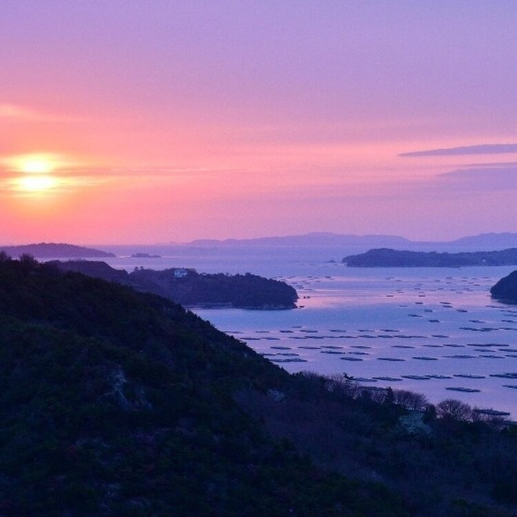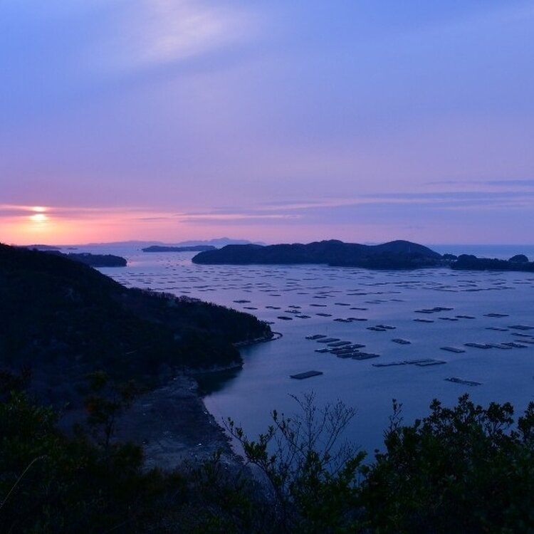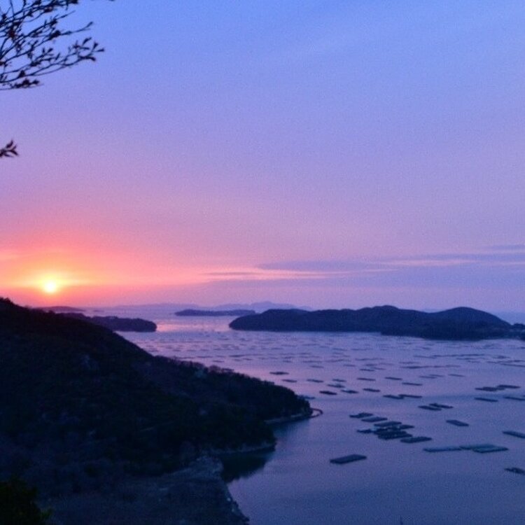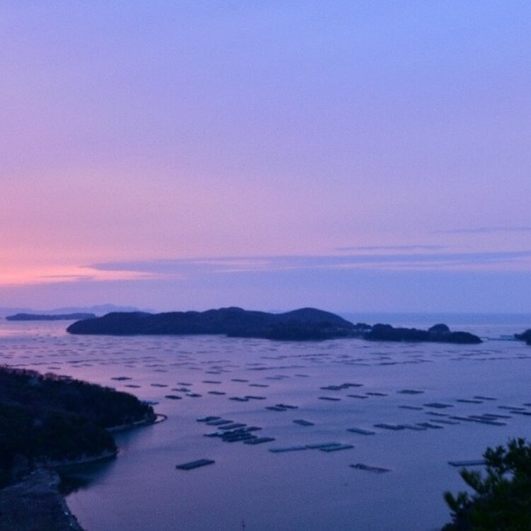 牡蠣筏が浮かぶ穏やかな海を優しく照らす太陽の光。その土地でしか見ることが出来ない美しい風景に癒されました🤗