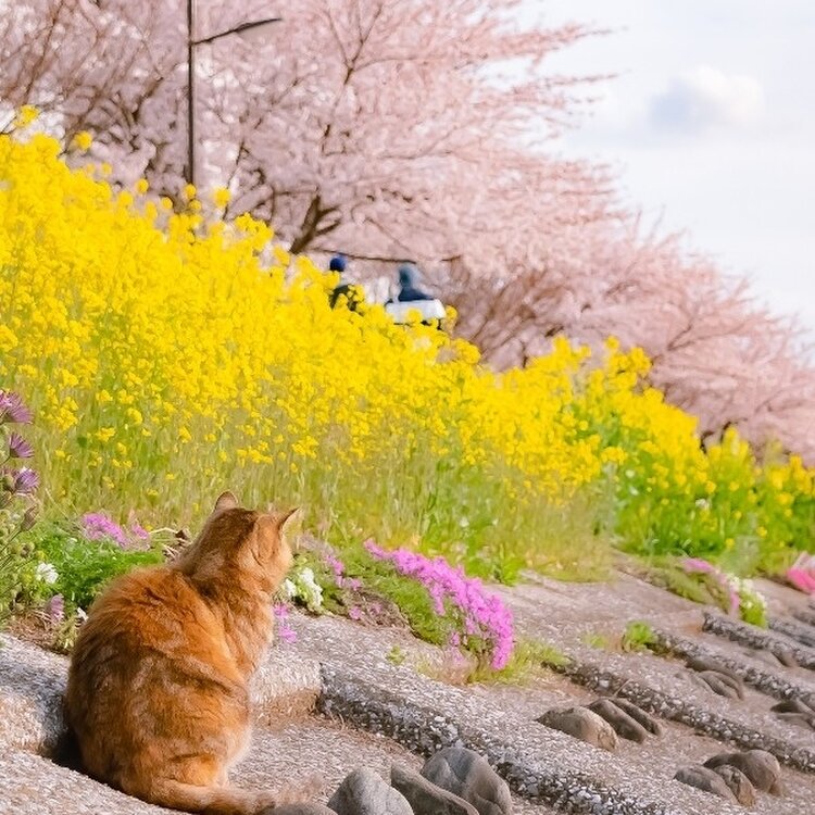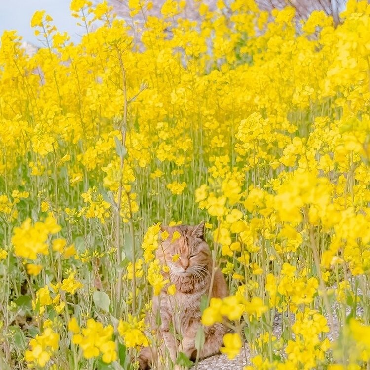菜の花の中でお目覚め猫ちゃん🐈💕 #しながわ花海道 #春風さんぽ #Myことりっぷ #猫 #地域猫 #菜の花 #勝島運河