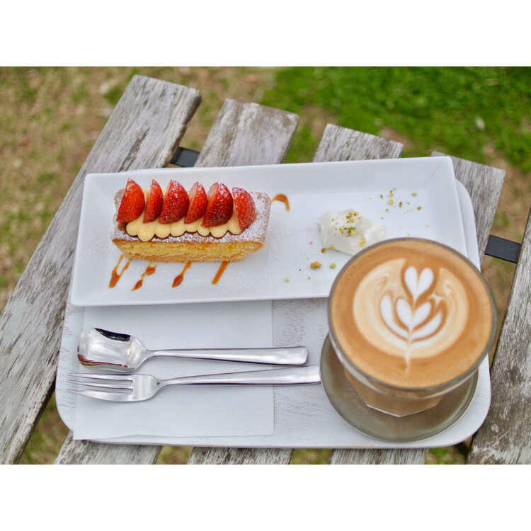 ①②🍓いちごタルトとカフェラテ✨