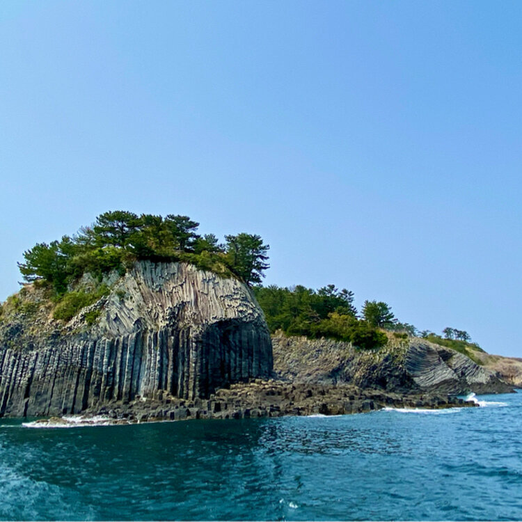 七ツ釜は玄武岩の柱状節理を玄界灘の荒波に削られてできた洞窟だそうです。