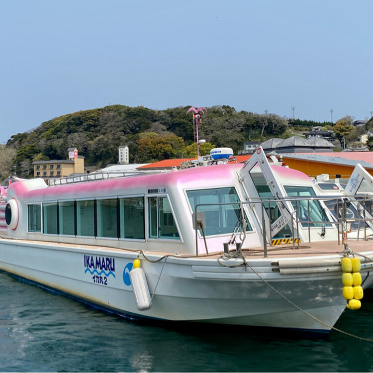 七ツ釜観光船のイカ丸と海中展望船のジーラがあり、