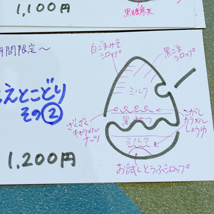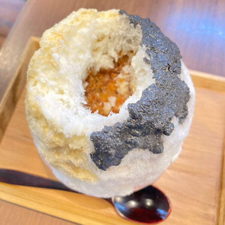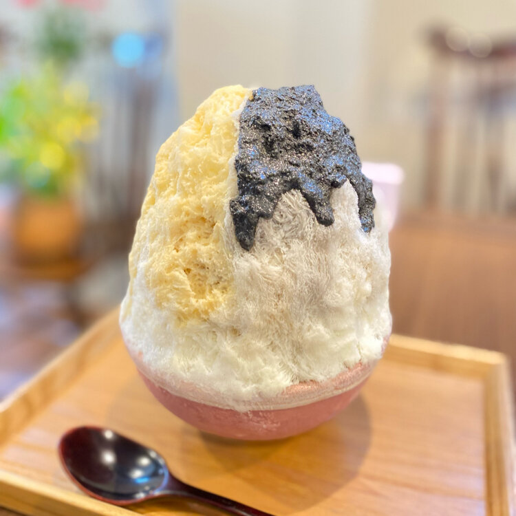 白ゴマと黒ゴマのツートンで運ばれてきたかき氷🍧