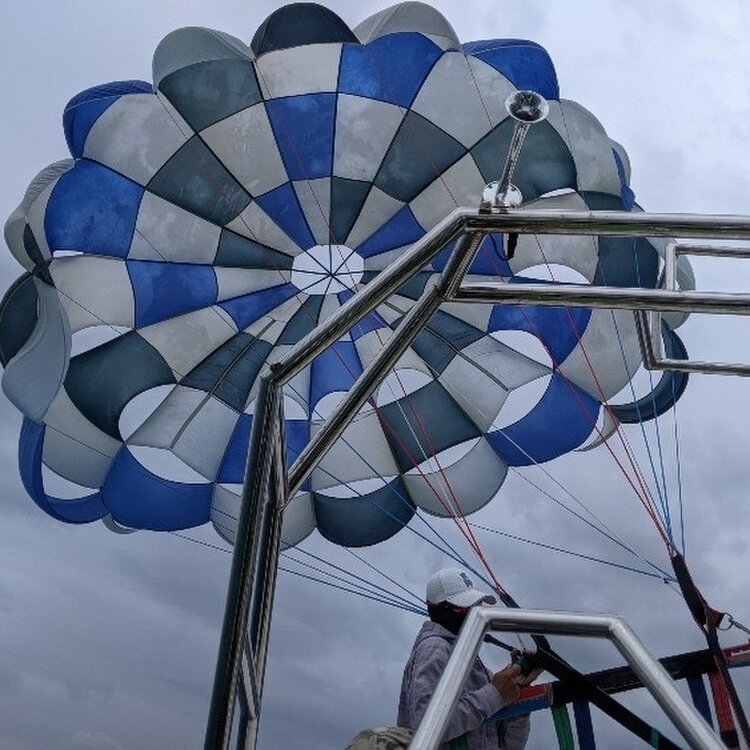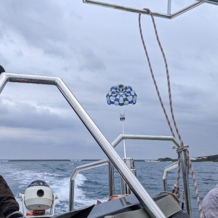 曇り空のため海の色は暗かったですが、初めてのパラセーリングは楽しかったです。