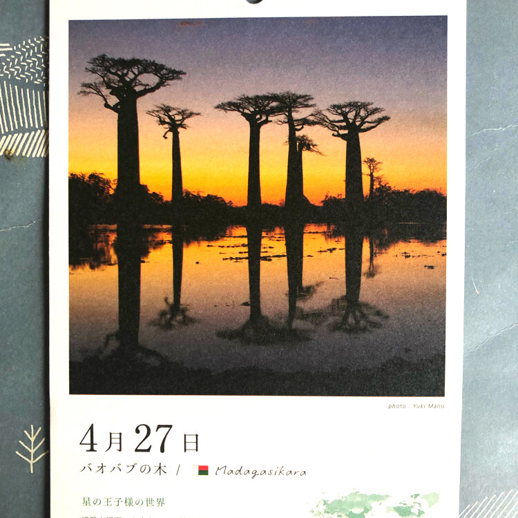 本日ザンビア🇿🇲からマダガスカル🇲🇬へ入国〜‼️ ☆*:.。. 世界一周365日カレンダー🗓.。.:*☆ 4月27日 バオバブの木 マダガスカル🇲🇬 ˚✧₊⁎星の王子様の世界⁺˳✧༚ 過酷な場所でも生存できる神秘的な力や食料などを 与えてくれる樹木として、古来より崇められてきた。 旅人のいちばんのお目当ては、夕闇に浮かび上がる シルエット。 夕暮れにバオバブの木が湖面に映り神秘的な光景ですね。世界には不思議な植物がまだまだありそうですね。
