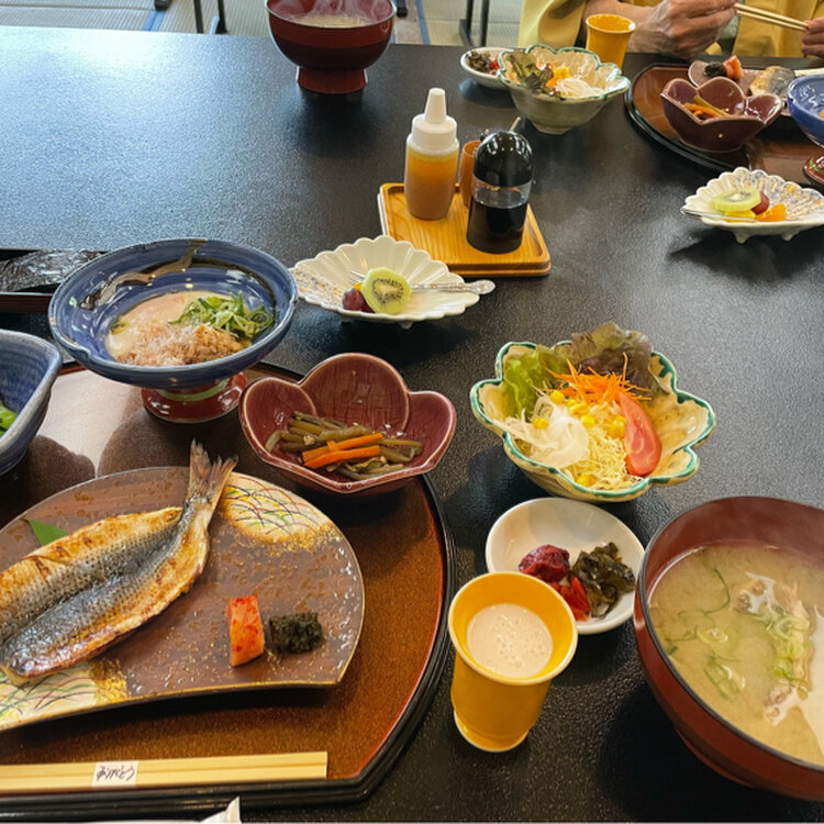 九州洞窟風呂の旅6 大洞窟の宿 湯楽亭 おはようございます☺️ 心のこもったお料理、最高‼️ とても美味しかったです‼️ お茶、コーヒー、炊いてるご飯までこちらの温泉水 すーごくまろやか‼️ お水って大切‼️ 本当に元気をいただきました‼️☺️ ご馳走さまでした☺️ ありがとうございます😭