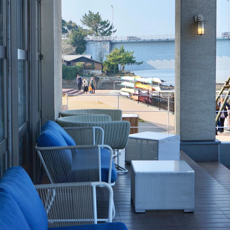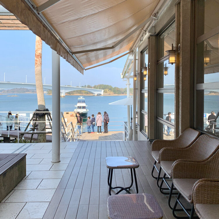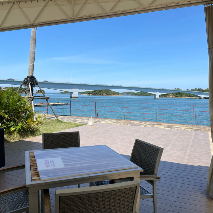 上天草にある比較的新しいおしゃれ立ち寄りスポット、リゾラテラス天草のテラスからの眺めです。