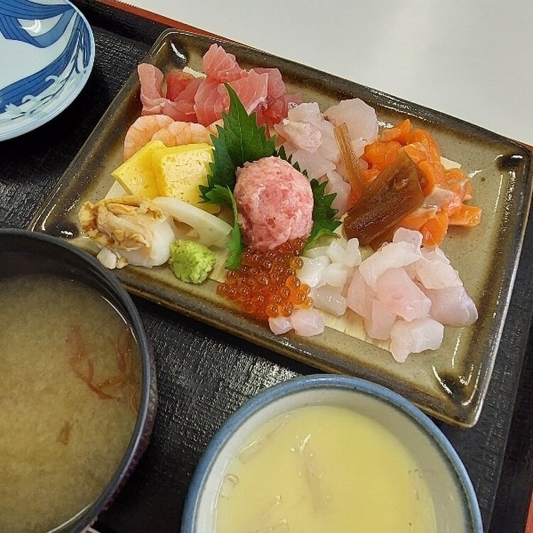二枚目の写真のように、お皿にお刺身がのっていて、自分で好きなようにごはんの上に盛り付けて、食べるスタイル💕