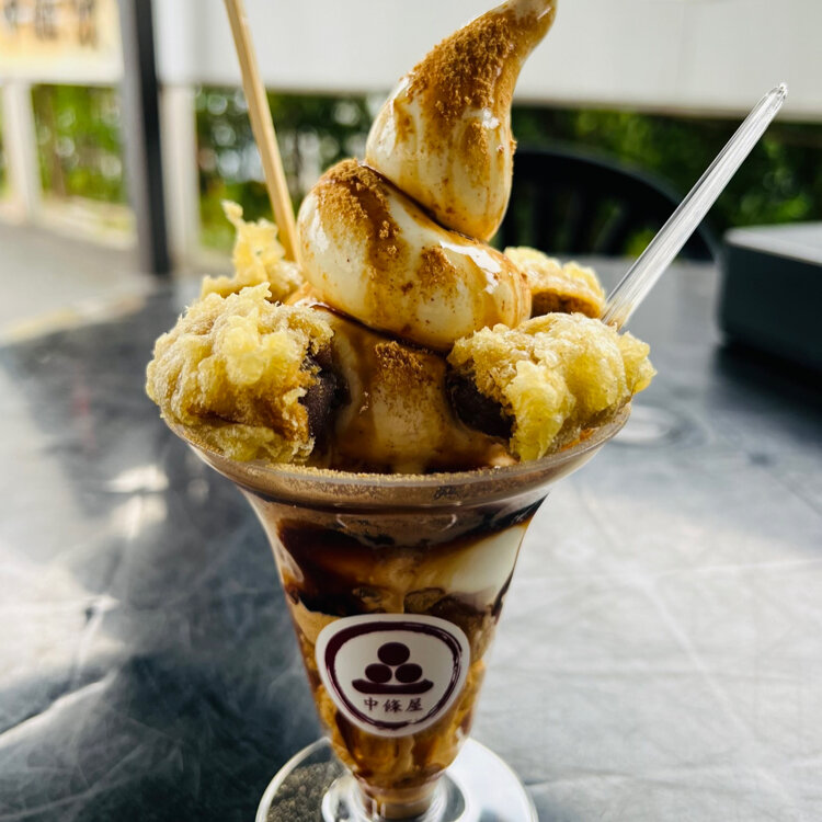 こちらのお店の目玉商品、フルーツポンチッチに使われているフルーツ6種類がきれいに並んで、真ん中のソフトクリームも濃厚でとっても美味しいです。カップとコーンから選べたので、よりパフェには珍しく、そして、より可愛いかなぁと、コーンをお願いしました(^^)