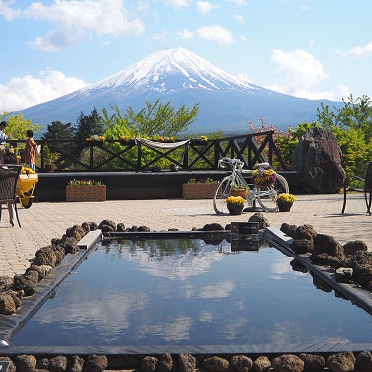ハーブ庭園には 逆さ富士が映る水鏡も。