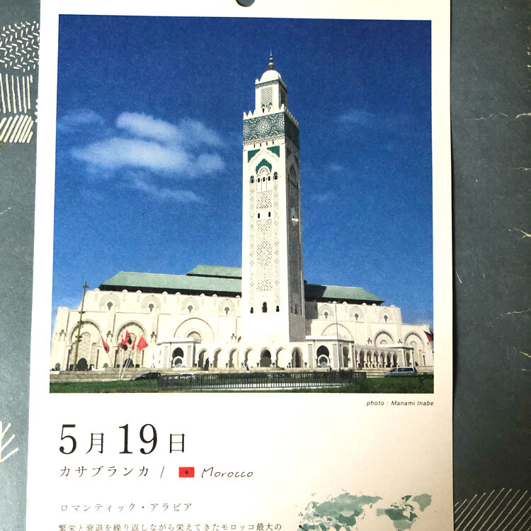 ☆*:.。. 世界一周395日カレンダー🗓 .。.:*☆ 5月19日 カサブランカ モロッコ🇲🇦 ˚✧₊ロマンティック・アラビア⁺˳✧༚ 繁栄と衰退を繰り返しながら栄えてきたモロッコ最大 の都市、カサブランカ。『20世紀最高の芸術作品』 といられるモロッコ最大のモスク、ハッサン2世 モスクは必見。 塔の上の方の装飾とか綺麗ですね。中ももっと綺麗な装飾のモスクなのでしょうね。この時代の繁栄がどれほどのものか、実際見てみたいです。