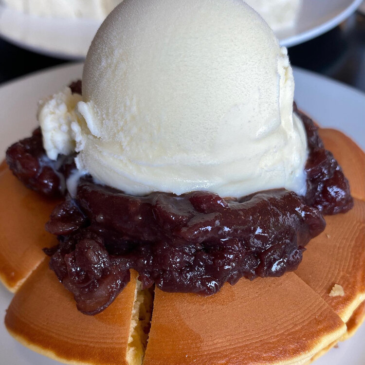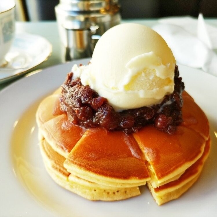 ふかふか & ほかほかの温かい生地に小倉あんことバターとアイスクリームが溶けて。。シロップもかけて。。美味しすぎる組み合わせ〜🥰💕あ〜♡空腹に染み渡る〜😋
