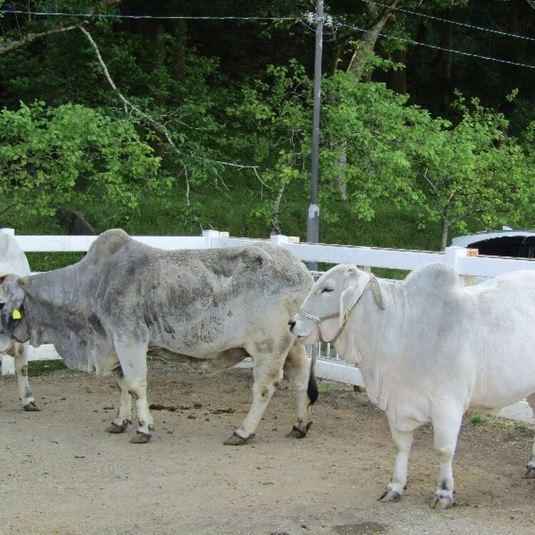 白牛は近くで見るとびっくりするほど大きな身体だけど、おとなしい、大きく垂れ下がった耳は、まるでロップイヤーラビットみたい(U・×・U)