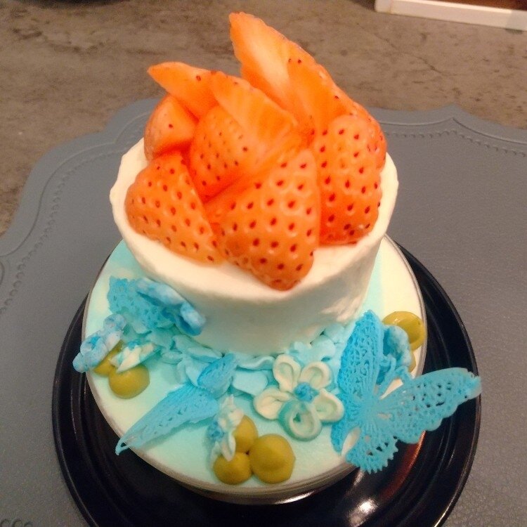 今回は、フルーツが4種類トッピングされたレアチーズケーキ。